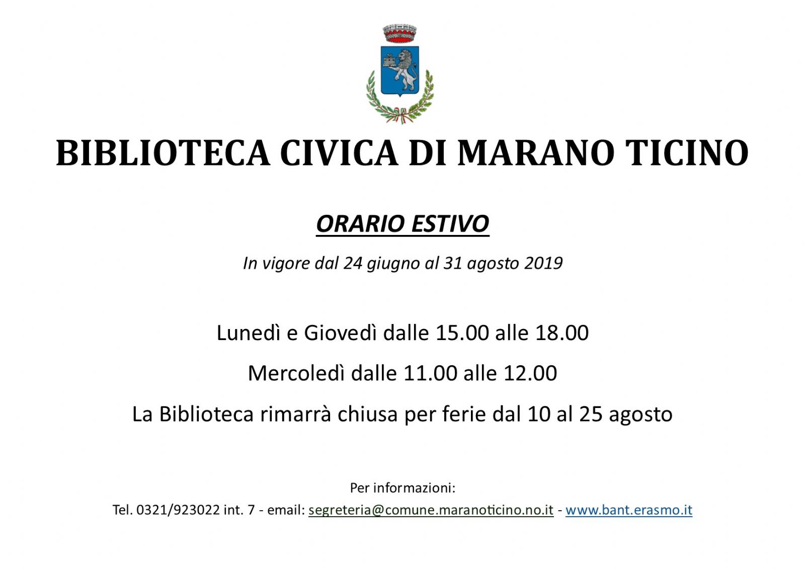 ORARIO ESTIVO BIBLIOTECA COMUNALE