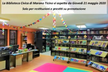 Si avvisano gli utenti che da giovedì 21 maggio 2020 riaprirà la Biblioteca Civica solo per le restituzioni e per i prestiti su prenotazione.