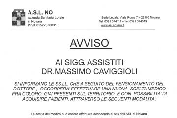 SI ALLEGA AVVISO RIVOLTO AGLI ASSISTITI DEL DR. MASSIMO CAVIGGIOLI CHE, A SEGUITO DI PENSIONAMENTO, CESSERA' LA PROPRIA ATTIVITA' DAL 01.01.2021.