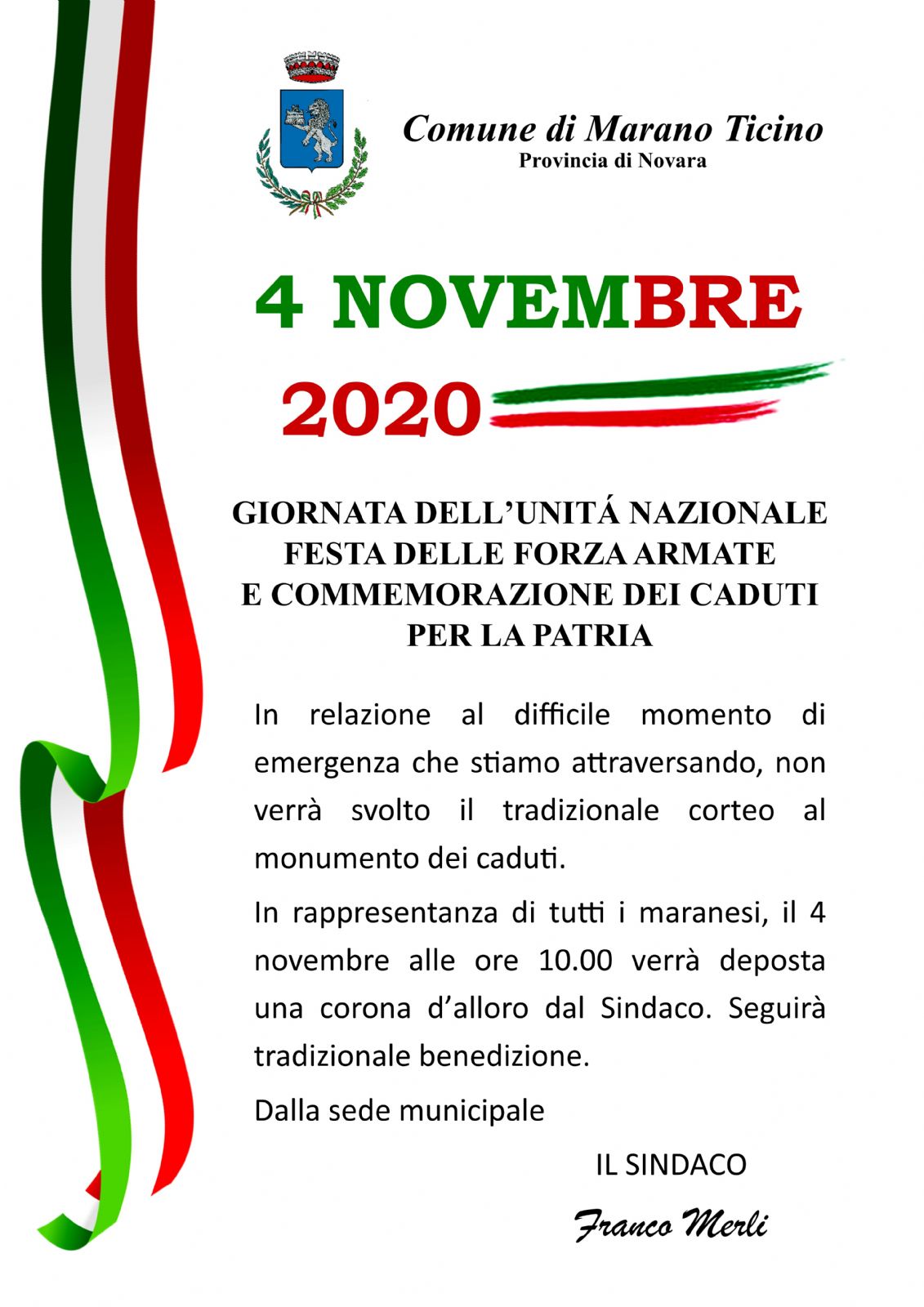 In rappresentanza di tutti i maranesi, il 4 novembre alle ore 10.00 verrà deposta una corona d’alloro dal Sindaco. Seguirà tradizionale benedizione.