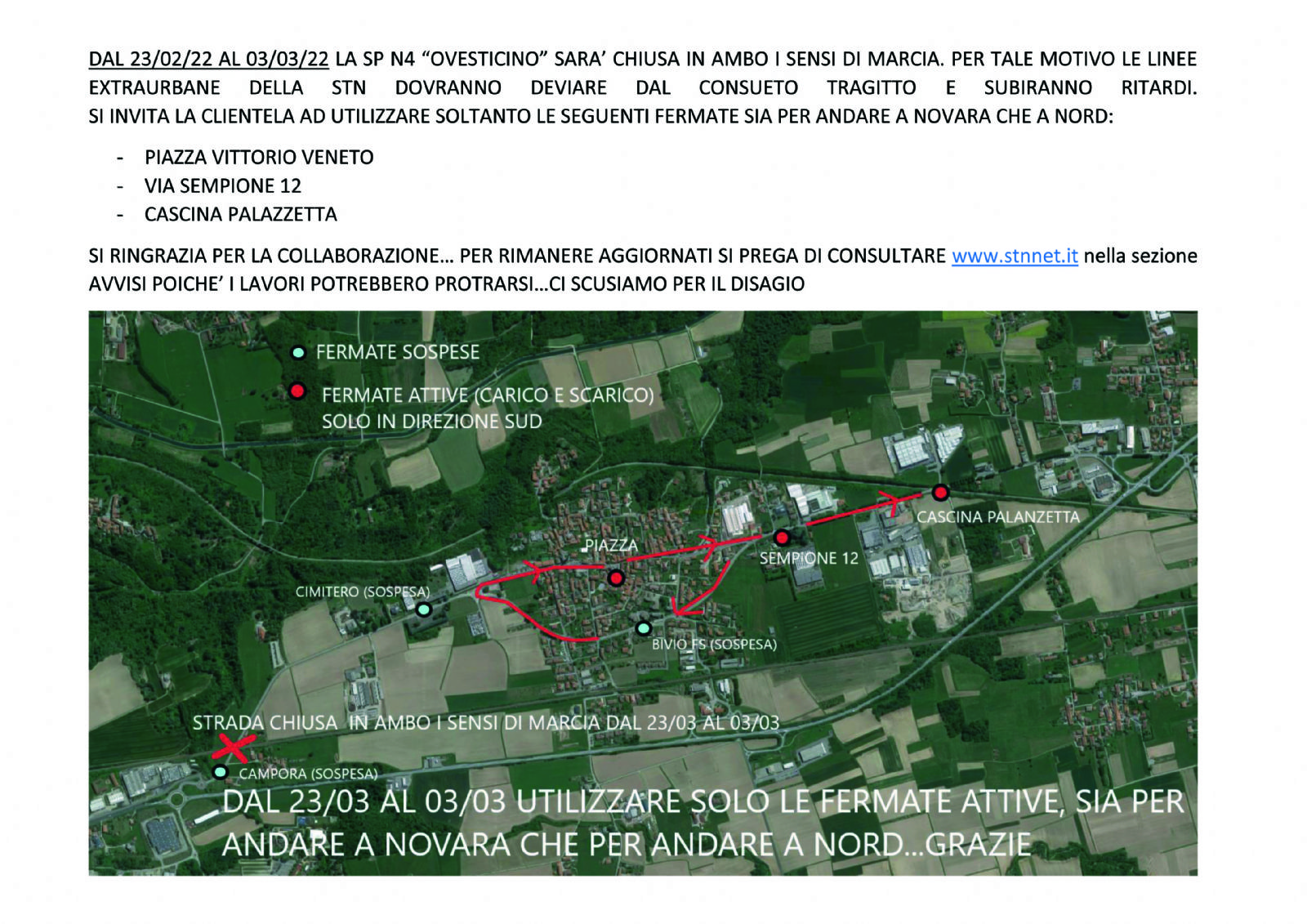 IN ALLEGATO SI RIPORTA LA COMUNICAZIONE INERENTE LA MODIFICA DEL PERCORSO DEGLI AUTOBUS DI LINEA IN OCCASIONE DELLA CHIUSURA DEL PASSAGGIO A LIVELLO DI POMBIA DAL 23 FEBBRAIO AL 3 MARZO (SALVO ULTERIORI PROROGHE).