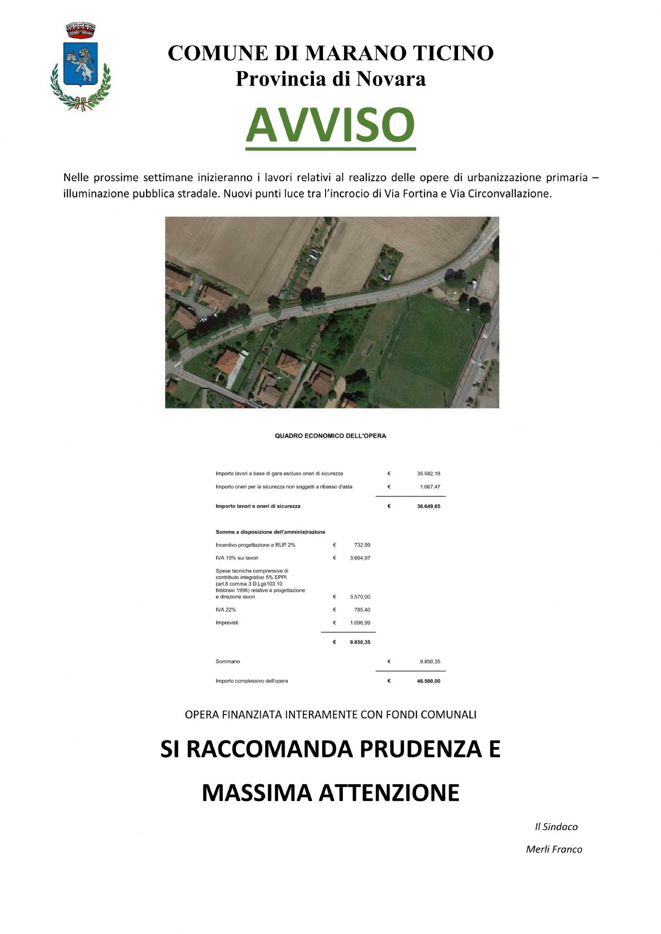 Nelle prossime settimane inizieranno i lavori relativi al realizzo delle opere di urbanizzazione primaria – illuminazione pubblica stradale. Nuovi punti luce tra l’incrocio di Via Fortina e Via Circonvallazione