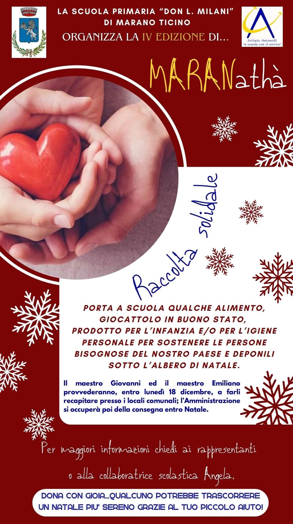 La Scuola Primaria Don Lorenzo Milani di Marano Ticino organizza la IV edizione di MARANathà - Raccolta Solidale.